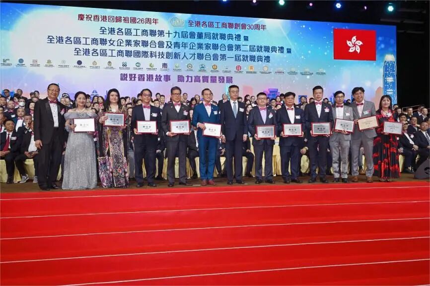 8月23日,全港各区工商联第十九届会董局就职典礼在香港会议展览中心新翼三楼大会堂隆重举行。财政司副司长黄伟纶、中国国际文化传播中心执行主席龙宇翔、香港立法会主席梁君彦议员、中共河南省委常委、统战部部长张雷明、香港特别行政区政府保安局局长邓炳强、中联办协调部副部长徐小林、中联办行政财政部副部长郑勇男、中联办九龙工作部副部长郭长勇、中联办港岛工作部二级巡视员温汝恩、中联办新界工作部处长廖铭华、政制及内地事务局副局长胡健民先生、民政及青年事务局副局长梁宏正先生、港区全国人大代表、香港工会联合会会长、立法会议员吴秋北议员、第十、十一届全国政协常委、全港各区工商联创会会长兼永远荣誉会长杨孙西博士、全港各区工商联永远荣誉会长全国侨联副主席卢文端等来自内地、香港政商界以及各成员会会员代表合共千余人出席本次活动。 ![]() 香港特别行政区财政司副司长黄伟纶出席活动并致辞 ![]() 香港特别行政区政府保安局局长邓炳强出席活动并致辞 典礼上,全港各区工商联第十九届会董局成员宣誓就职,并颁发委任状。当晚,还同时举办了全港各区工商联女企业家联合会、青年企业家联合会第二届就职典礼及全港各区工商联国际科技创新人才联合会第一届就职典礼,旨在进一步推动女企业家、青年企业家和科技创新人才的发展。 ![]() 全港各区工商联及各分会会董局成员宣誓就职 全港各区工商联新任会长杨凯山表示,过去三年,香港砥砺前行,是因为在“一国两制”的稳固基石下,香港拥有背靠祖国、联通世界的独特优势。未来,十九届会董局也将紧密团结香港工商界,同时高举爱国爱港旗帜,坚定拥护“一国两制”方针,支持香港特区政府依法施政,继续为香港的繁荣稳定及民生改善贡献力量。 ![]() 全港各区工商联会长杨凯山致辞 首席会长卢锦钦在致词中对会务发展提出三点希望,一是加强团结,深化服务;二是创新发展,整合资源;三是不忘初心,胸怀大局。他强调,全港各区工商联将一如既往秉持爱国爱港的宗旨,积极为香港与内地工商界搭建桥梁,为国家的发展贡献心力。 ![]() 全港各区工商联会首席会长卢锦钦致辞 全港各区工商联执行委员会主席肖凯发表致谢辞,他强调将竭尽所能、群策群力,与各位会员一道,将全港各区工商联建设成为有号召力、有亲和力、有感知力、有凝聚力的商会,并为会员企业多办实事,多办好事,让广大会员企业能通过本会的平台得到人生和事业更大的发展。
